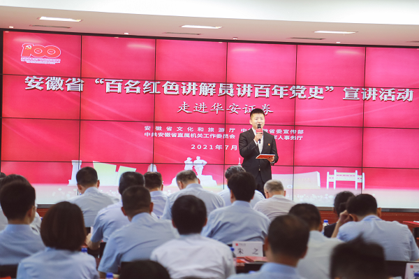 市场星报、安徽财经网(www.ahcaijing.com)、掌中安徽讯 7月14日,由安徽省文化和旅游厅、省委宣传部、省直机关工委、省退役军人事务厅联合主办的“百名红色讲解员讲百年党史”宣讲活动走进华安证券,开展专场宣讲,让广大企业干部职工共学党史,汲取奋进力量,激发企业创新发展新动能。