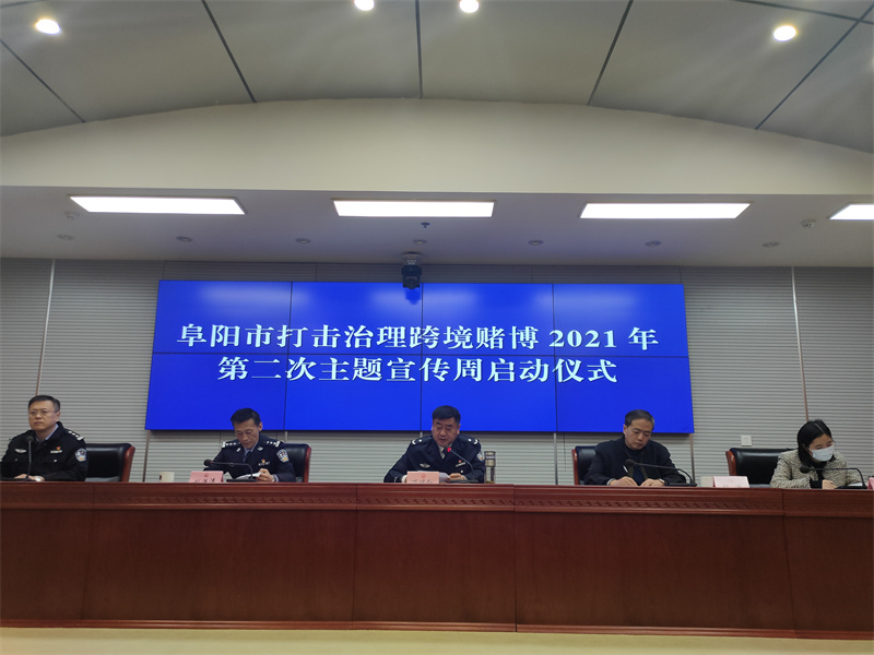 市场星报、安徽财经网(www.ahcaijing.com)、掌中安徽讯 (朱安民 李欣悦 记者 杨文艺)为深入推进治理跨境赌博工作,进一步巩固和扩大前期宣传成效。11月15日,阜阳市委宣传部和网信办市公安局等单位,在市公安局举行了“阜阳市打击治理跨境赌博2021年第二次主题宣传周”启动仪式。