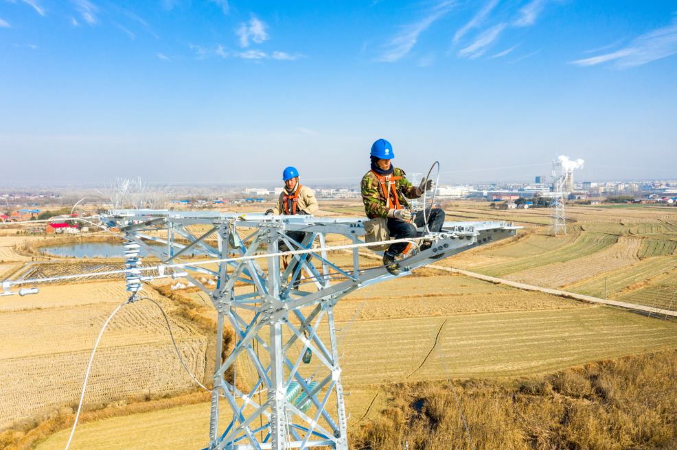 市场星报、安徽财经网(www.ahcaijing.com)、掌中安徽讯 (宋卫星 赵石峰 记者 胡昊) 2021年12月19日,在安徽省天长市汊涧镇三庙村,电力工人在40多米的高空对110千伏天(长)半(塔)531线路进行投产验收。