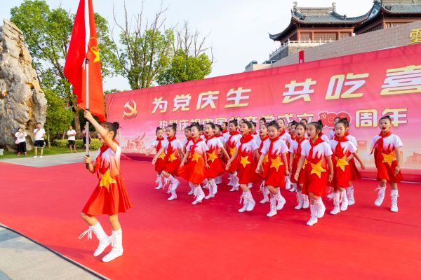 市场星报、安徽财经网(www.ahcaijing.com)、掌中安徽讯(刘志 朱元贺 张家傲 朱新力 王辉 付志刚 张鹏 记者 禹志强)为庆祝中国共产党百年华诞,激励和动员全县广大党员干部群众,把爱党爱国爱社会主义热情转化为实际行动,坚定不移在全面建设社会主义现代化国家伟大征程中建功立业,奋力谱写新发展阶段的灵璧篇章。7月1日上午7时1分,宿州灵璧县举办“为党庆生·共吃喜面”主题活动。老党员代表、优秀党员代表、党员企业家代表、党员职工代表、道德模范和劳动模范代表等200多人,以“共吃喜面”的形式“为党庆生”,向伟大的中国共产党送上最美好的祝福。