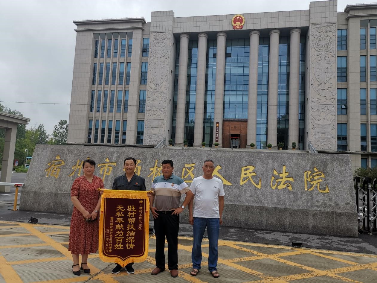 市场星报、安徽财经网(www.ahcaijing.com)、掌中安徽讯(李峰 记者 禹志强)2021年7月7日,宿州埇桥区曹村镇左洼村村两委干部、扶贫小组长、老党员和贫困户代表风尘仆仆赶到宿州市埇桥区法院,感谢王化同志这些年在左洼村的艰辛付出和做出的贡献,带着绣有“驻村帮扶结深情,无私奉献为百姓”的锦旗送给王化同志。