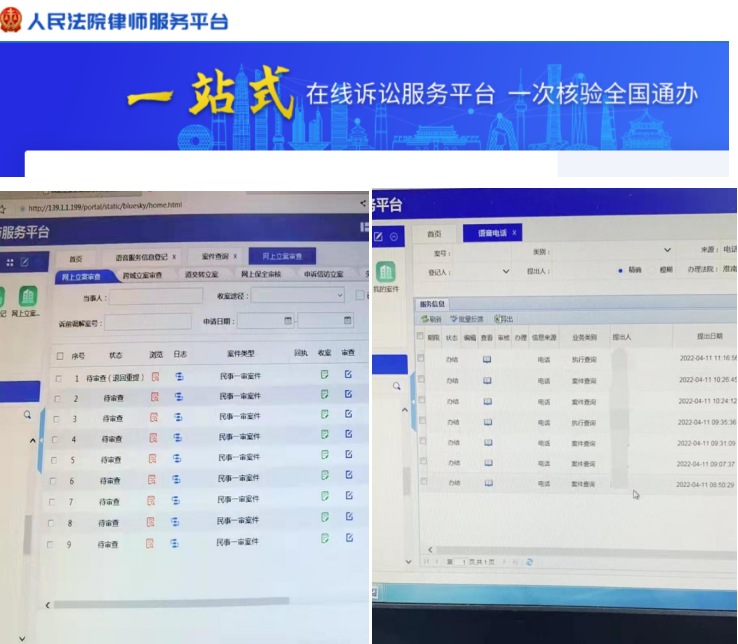 疫情期间,群众诉求不间断,诉服工作“不打烊”。诉讼服务中心坚持工防齐抓,充分利用“人民法院在线服务平台”、“人民法院律师服务平台”、“12368热线电话”等线上服务平台,依法办理咨询、立案、缴费、送达等相关诉讼服务工作,让数据多跑腿,群众少跑路。网上立案67件、网上调解19件,接听热线电话71通。