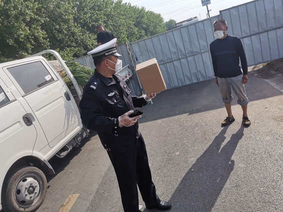4月24日15时许,凤台县公安局交管大队顾桥中队接到县公安局指挥中心指令,要求帮助解决辖区张集煤矿矿工陈某的求助。经联系陈某患有慢性疾病,一直在服药治疗。近期因新冠肺炎疫情期间,张集煤矿实施封闭式管理,所带的药物已快吃完,因陈某家住在毛集实验区,与凤台县交界处实施全封闭管控,家人只能把备好的药物送到交界处,无法直接送到陈某手中,没办法才报警求助。中队长王辉了解到陈某的情况后,立即带领辅警张后根等驱车30多公里赶到凤台县与毛集试验区交界处,按照陈某提供的联系方式从家人手中接到药物后,又连忙驱车赶到张集矿将药物顺利转交到陈某手里。于是便出现文中开头的那一幕。