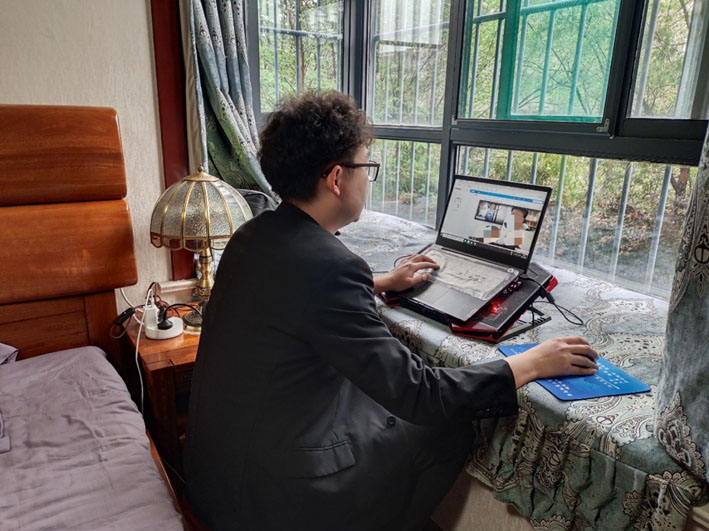 因疫情原因,泉山法庭书记员居家隔离,增加了线上开庭的难度。为了保证语音系统、不同时空网络的顺畅,庭审前一天,法官、助理与书记员进行多次测试,法官在法庭现场开庭、助理在办公室模拟当事人对话、书记员在家调试电脑设备,通过语音对讲模拟庭审现场,书记员在家对庭审现场进行记录,结束后三方身居三处对笔录进行签字。在确保系统和网络没有障碍并做好网络出现问题时备用方案后,干警及时联系当事人,告知当事人云上开庭的注意事项,确保庭审高效进行。