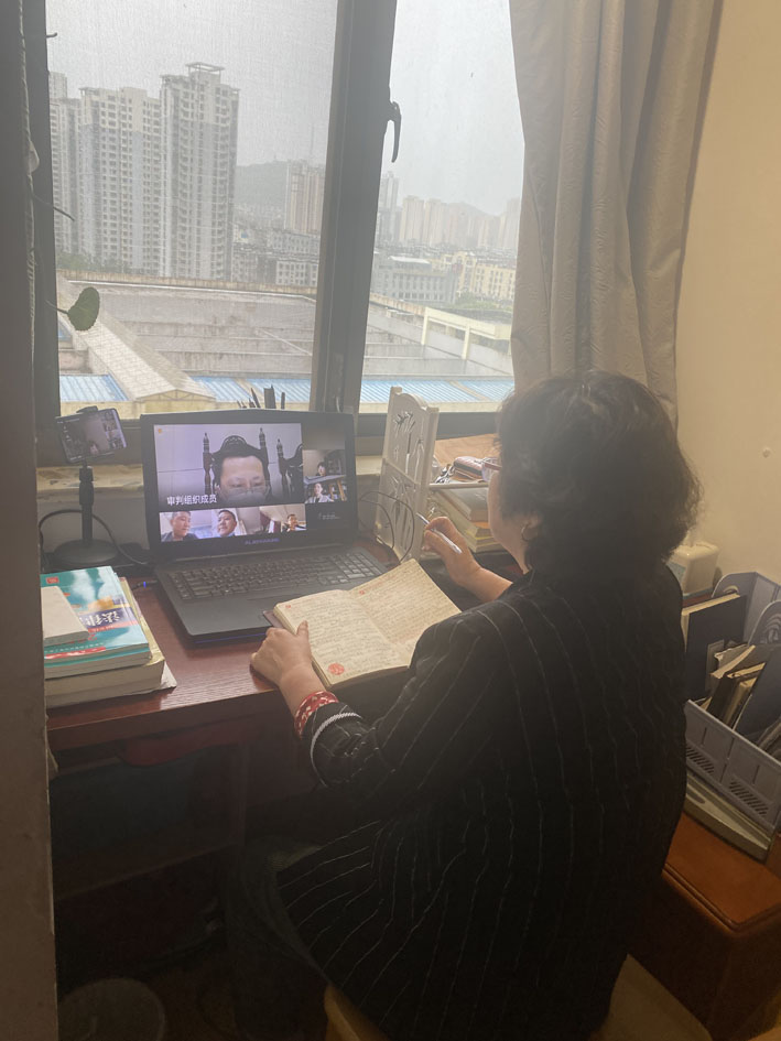 受疫情影响,我以为自己陪审的案件会被延期,但没想到的是,行政庭杨勇庭长告诉我可以居家“云上开庭”。4月8日,书记员历梦璇通过微信耐心地教我如何使用微信出庭小程序,告诉我“云上法庭”开庭流程。开庭那天,我隔着屏幕聆听当事人陈述、答辩等。4月份以来,我参与网上开庭的案件共有16起,最多一次10地当事人共同参加开庭,在法官的主持下,原、被告及委托代理人,陪审员都是在家进行“云上法庭”开庭审理,多方线上进行陈述、答辩、举证质证、法庭辩论等全部环节,最后形成庭审笔录,由书记员发起电子签名签署,这和线下庭审并无区别,整个庭审过程程序规范。