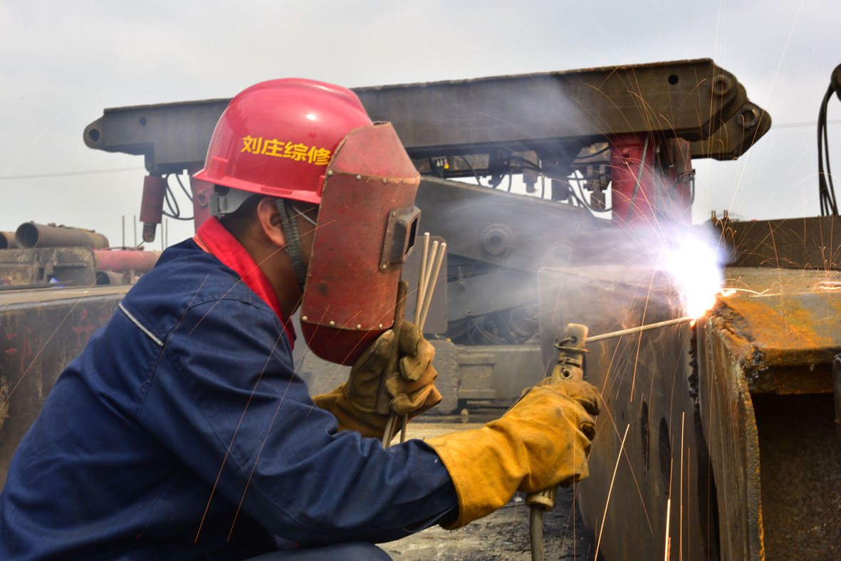 图为刘庄煤矿职工正在工作面检修液压支架。