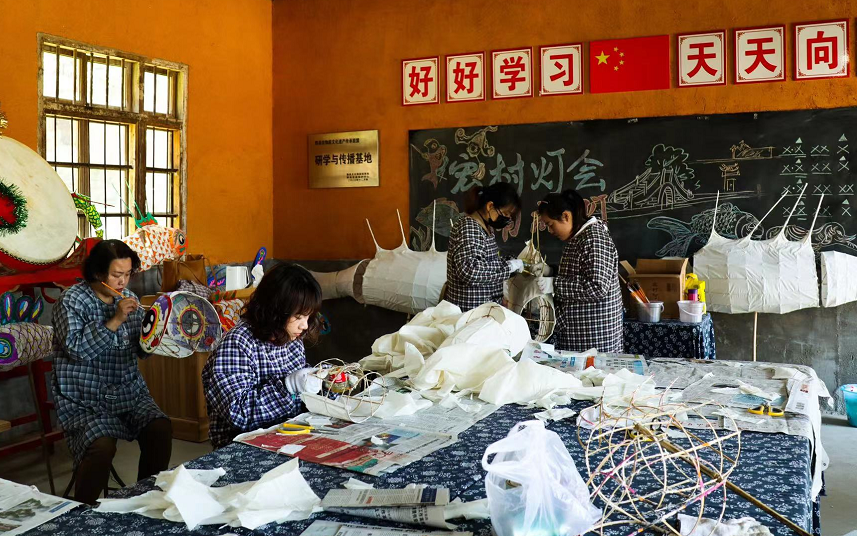 走进黄山市黟县宏村镇老宏村小学,在徽黄京黟营销中心创建的“黟县非遗保护传承研学与传播基地”里,只见营销总监黄洁带领这一群年轻人在制作花灯,只见有的正在焊接骨架,有的在给花灯上色,有的探讨花灯制作技艺的提升方法和改进的地方,大家伙忙的不亦乐乎。