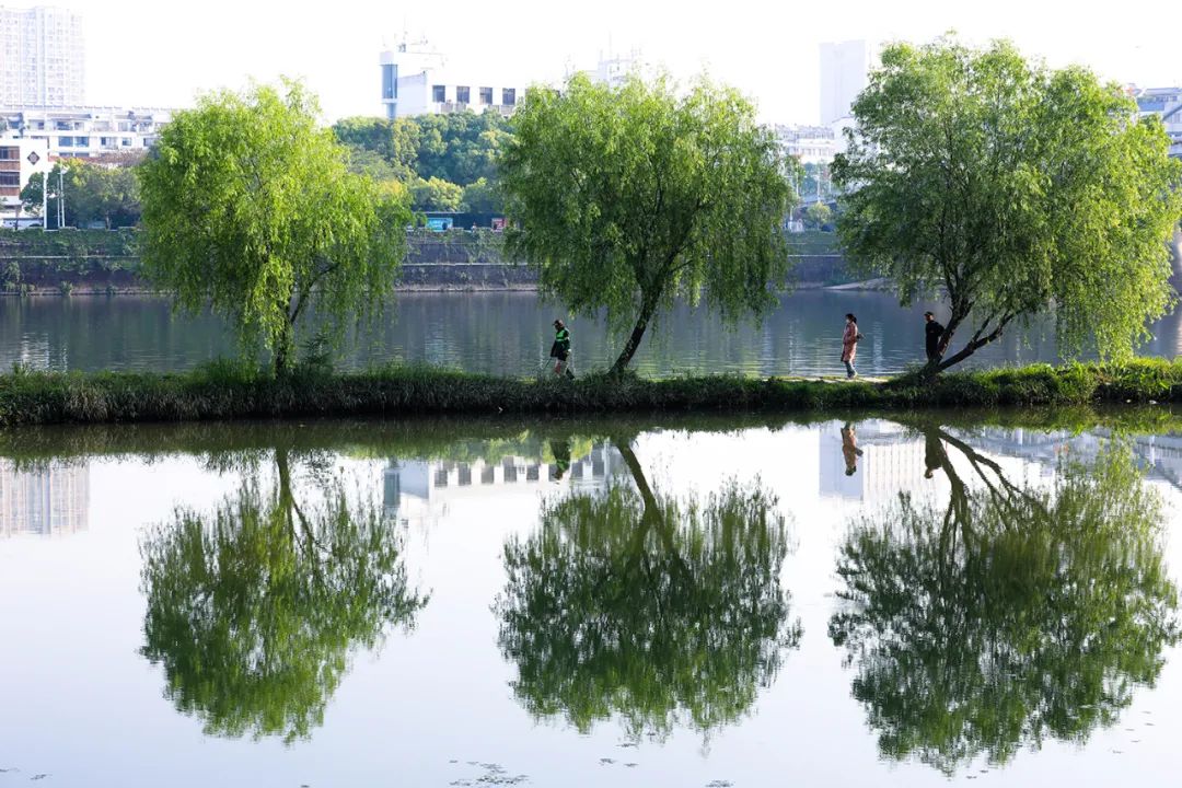 山水相依,景城一体。4月20日,黄山市屯溪区湿地公园内草木葱茏,风光旖旎,新安江水与青山绿野相映成趣,游走其中,美不胜收,构成了一幅人与自然和谐相处的美丽画卷。