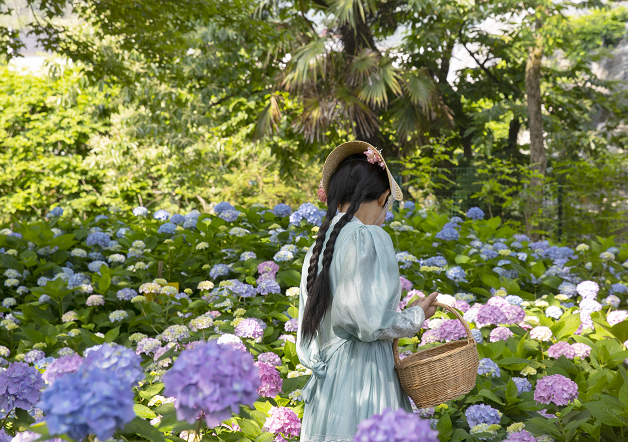 每年6-7月是西递石林绣球花观赏季,一朵朵花型饱满、硕大美丽的绣球花沐浴在阳光下,显得格外艳丽。一旁的马鞭草花海,层层叠叠的紫色花朵俏立枝头,梦幻紫洒满整个花田,吸引不少游人驻足拍照。