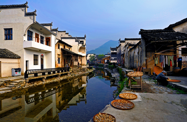 黄山市黟县宏村镇雉山村又名卢村,地处黟县北部,毗邻世界文化遗产地宏村,该村是以卢姓为主,聚居的古村落,始建立于南唐时期,至今已有一千多年的历史。村内山峦环抱,民宅依溪而建,临水一侧挑出,一级级青石台阶,一座座石桥,皆是历史的亲历者,当游客游走在这山村水乡之间,别有一番情趣。