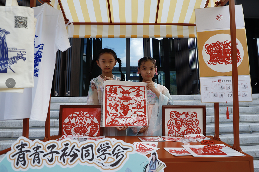徽菜好吃,徽州小吃更惹人爱。活动现场,游客品尝到极具地方风情的葱油饼、辣椒酱、农家土锅巴、挂面圆子等特色小吃。当天,悠悠湖文旅街区还首次推出了悠悠湖文创雪糕,引人关注。除美食之外,悠悠市集的剪纸,纸墨画等非遗展示,同样吸引学生族们,很多同学在非遗大师的指导下,亲手制作一个文创作为礼物送给自己或朋友。