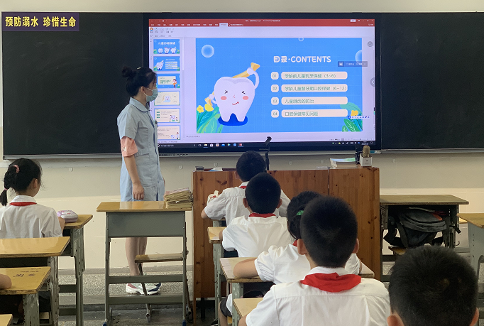在东城实验小学的教室里,口腔专家利用PPT、口腔模型等教学方式,为孩子们宣传口腔保健、牙病预防的相关知识,通过课堂互动,绘声绘色地向同学们讲解人体的牙齿结构、生长特点、正确刷牙方法等,并开展免费口腔健康检查,让大家认识到口腔健康的重要性