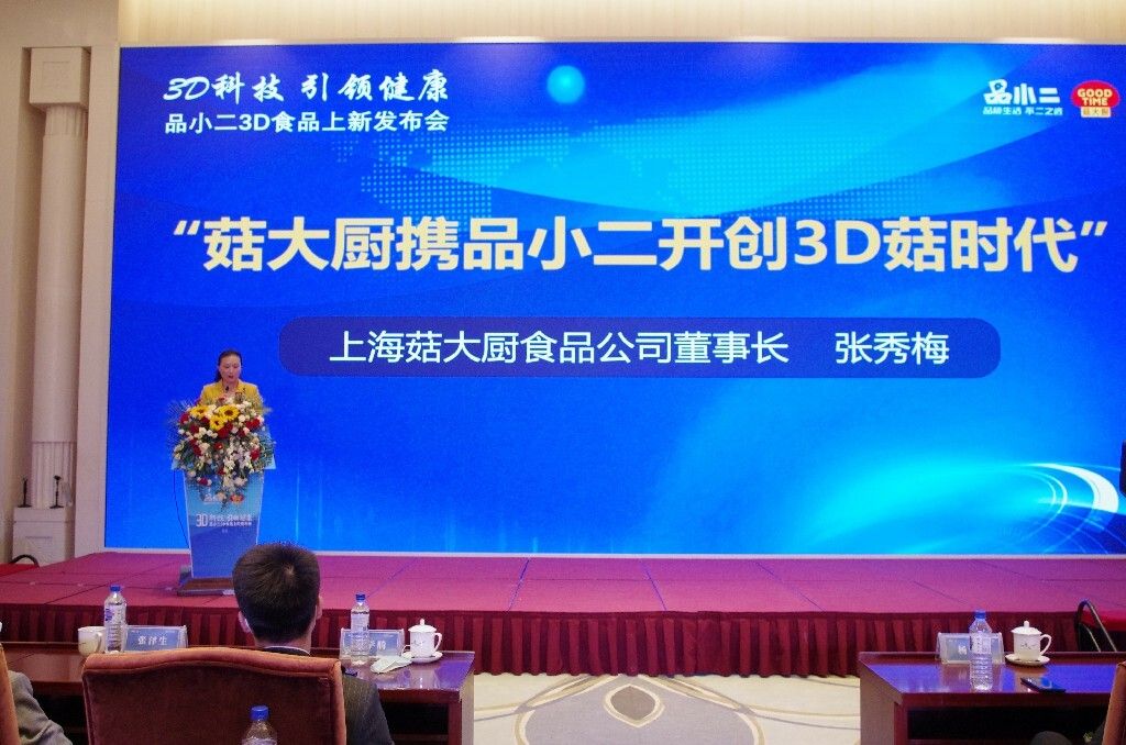 由上海生态健康科学研究院主办,吉林省品小二品牌管理有限公司承办的“3D食品,引领健康——暨菇大厨携品小二3D食品新品发布会”成功举办。天津科技大学食品学院博士生导师张泽生教授、上海生态健康科学研究院院长张城、吉林省品小二品牌联合创始人杨江南、上海菇大厨食品有限公司董事长张秀梅、中盐集团吉林盐业副总经理王金勇等领导出席了本次会议。