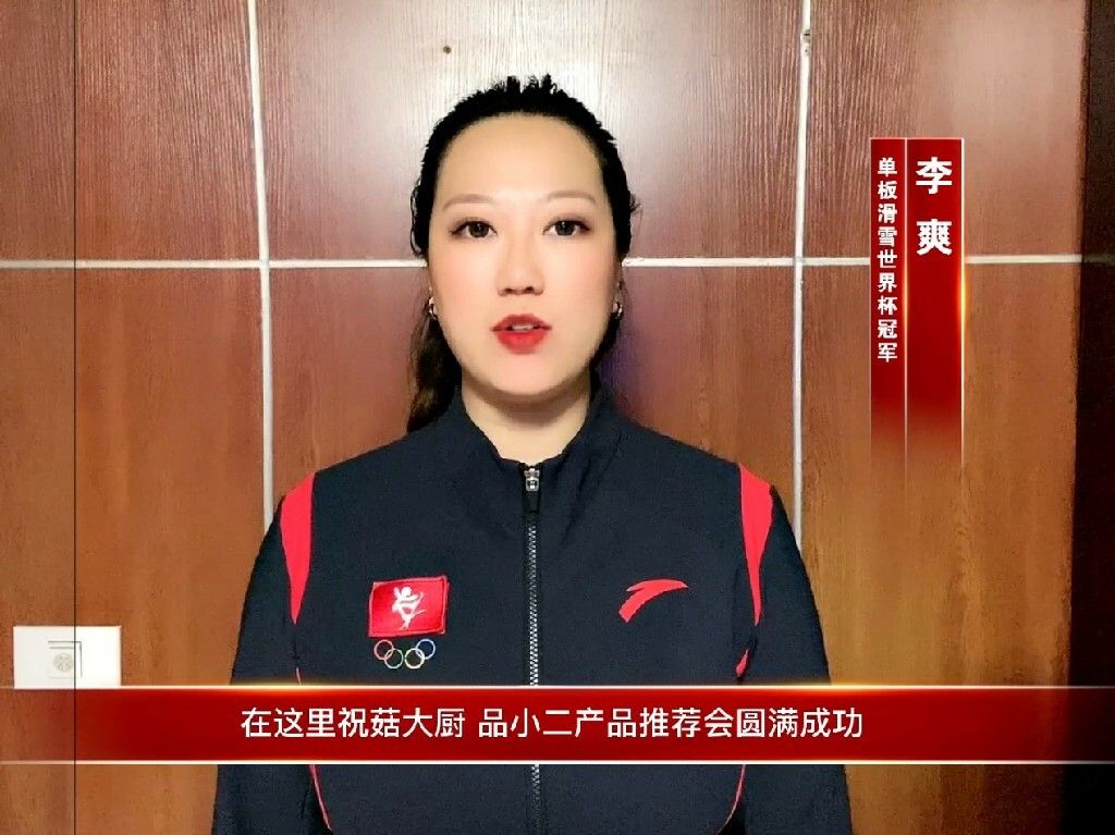 菇大厨的3D健康食品,得到了国家体育局的大力支持,经推荐,单板滑雪世界杯冠军李爽和速度轮滑世界冠军郭丹受邀为菇大厨和品小二做产品代言和形象大使。现场,李爽和跳马世界杯冠军程然、花样游泳世界杯集体冠军汤梦妮发来了祝福视频。