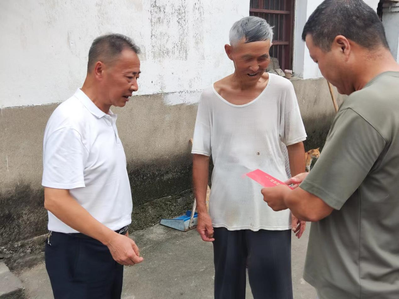 市场星报、安徽财经网(www.ahcaijing.com)、掌中安徽讯(白朱成记者曹开发)在“七一”建党节来临之际,为庆祝中国共产党成立101周年,进一步弘扬党的光荣传统和优良作风,充分体现党组织对困难党员的关怀和爱护,7月1日,宣城市泾县桃花潭镇鸿峨村党总支部书记朱虎群、驻村工作队第一书记罗文胜等一同走访慰问了在村困难党员。