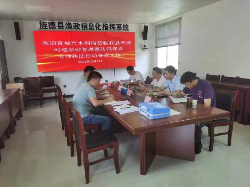 督查组一行首先听取了旌德县农业农村水利局副局长徐有清关于旌德县河道采砂管理暨防汛保安专项执法行动总结报告,随后查看了有关工作资料,最后提出了意见和要求。