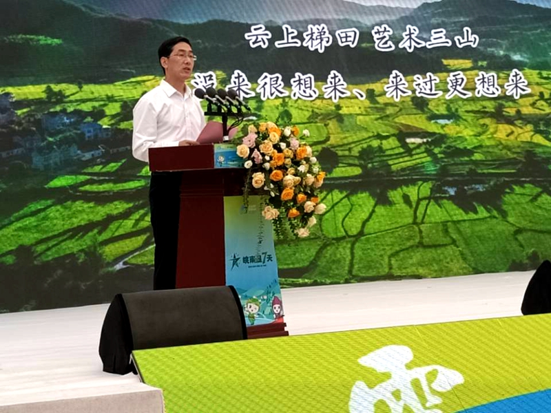 市场星报、安徽财经网(www.ahcaijing.com)、掌中安徽讯 (汪红潮 程跃云 记者 曹开发) 又到金秋好光景,瓜果飘香庆丰收。9月21日,宣城市旌德县兴隆镇三山村嘉宾云集、气氛热烈,旌德大黄山文旅推介暨皖南星7天三山田园艺术节在这里精彩启幕。省文联副主席、省摄影家协会主席许国,省摄影家协会副主席张东俊,安徽艺术学院党委委员、纪委书记宣扬,宣城市委常委、宣传部长郭金友,宣城市文联党组书记、主席潘丽华,旌德县委副书记、县长吴忠梅等县领导,以及宣城市各县市区委常委、宣传部长,各县市区委宣传部分管负责同志,各县市区文联主要负责同志;黄山区旅游集团、黄山区文旅体局负责人;旌德县各镇、县直相关单位主要负责人;电影《六号银像》剧组、宣酒集团等企业负责人参加活动。