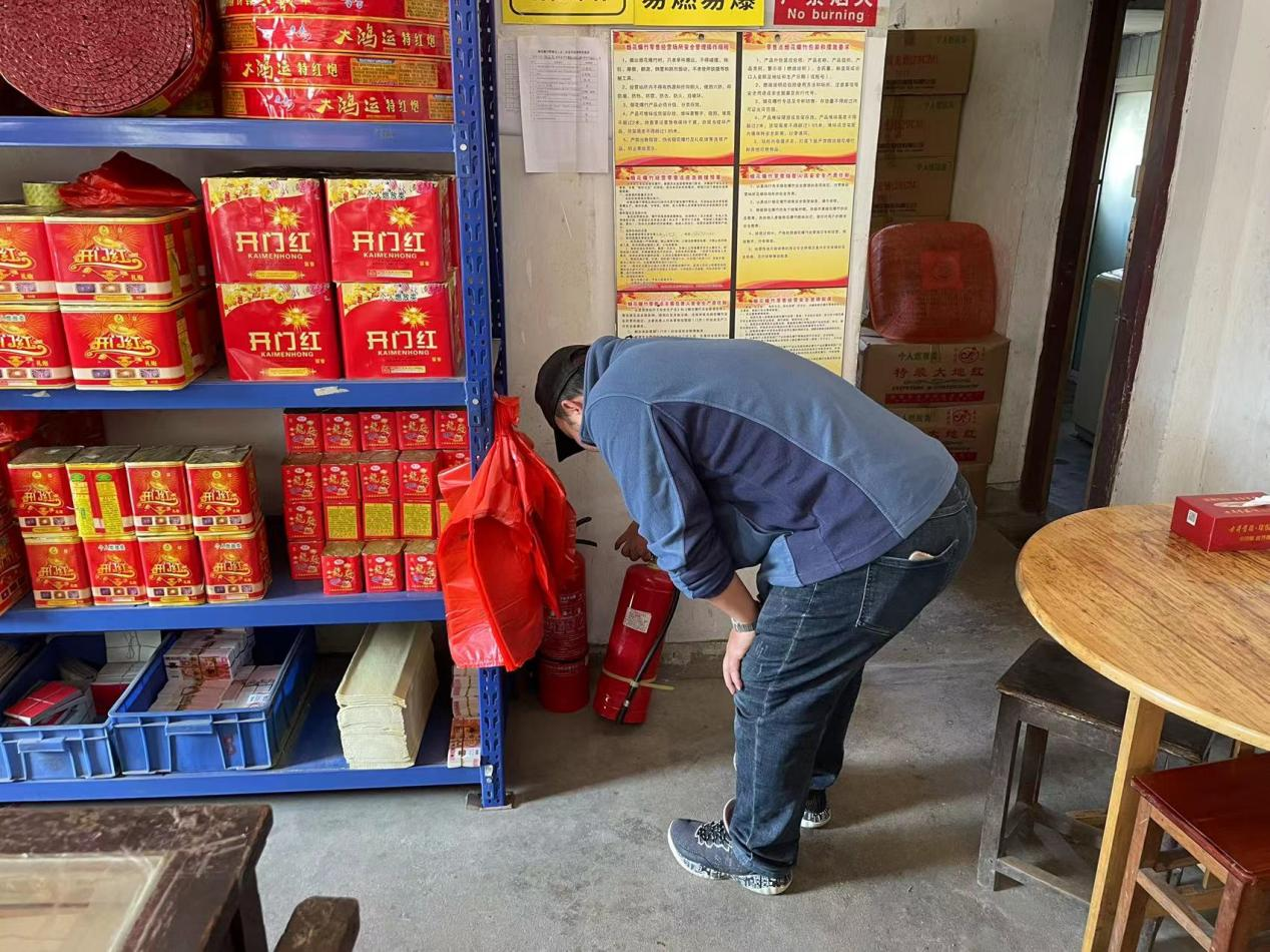 检查组详细查看了储存仓库的温湿度、烟花爆竹存放量、消防设施以及安全措施的落实等情况,当场指出存在问题。同时也向各经营者宣传烟花爆竹安全知识,要求经营者要落实主体责任,执行烟花爆竹经营许可制度,确保经营手续齐全、进货渠道合法、储存空间规范、经营环境安全有序。