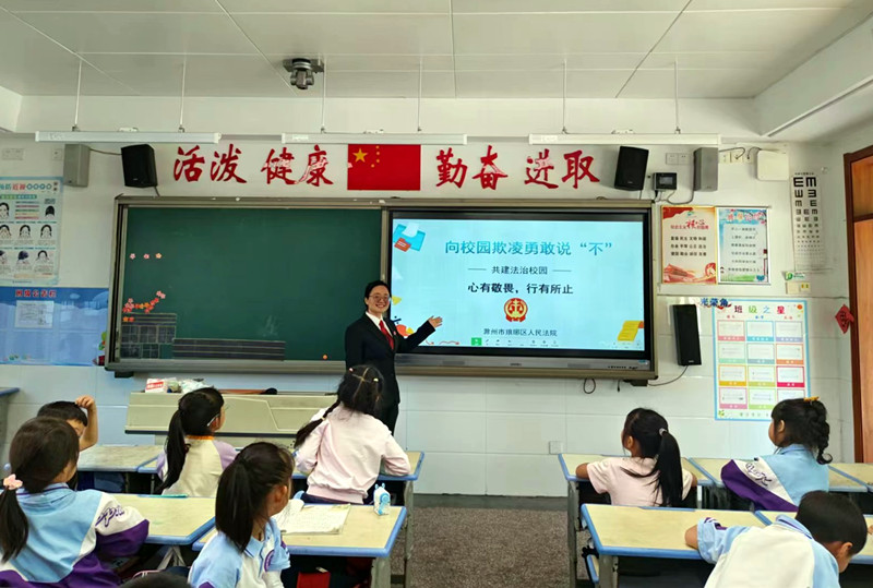 作为学生家长代表,法院干警以“向校园欺凌勇敢说‘不’”为主题,为学生们提供了一堂生动的普法教育讲座。讲座中,法院干警通过课件展示、案例讲解及问答互动等方式,向学生介绍了什么是校园欺凌、校园欺凌涉及的法律法规以及如何预防和应对校园欺凌,教育学生们自觉遵守校纪校规,树立自尊、自律、自强意识以及增强辨别是非和自我保护的能力。