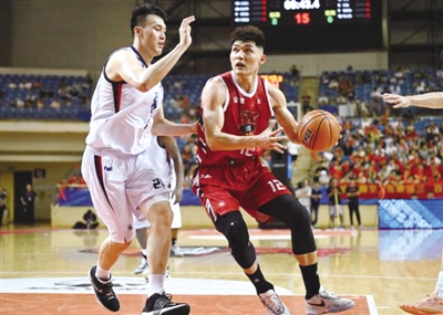 李祥波(右)在比赛中进攻。新华社记者 周牧/摄