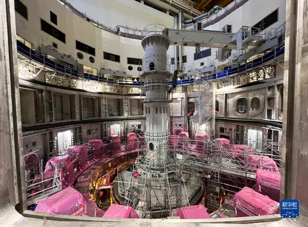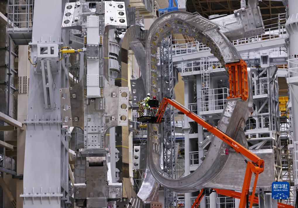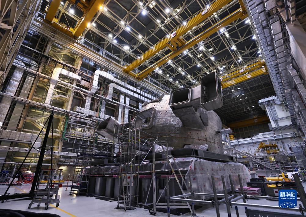 这是11月23日在位于法国圣保罗-莱迪朗斯的国际热核聚变实验反应堆(ITER)建设现场拍摄的安装中的托卡马克装置。新华社记者 高静 摄