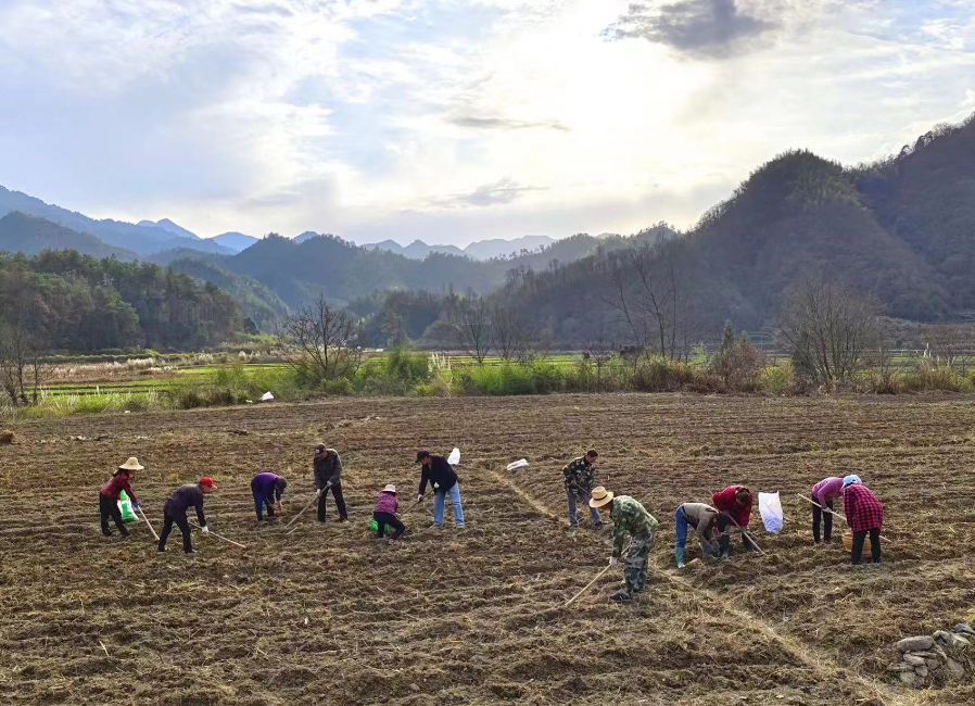 走进佘溪村黄花菜种植基地,冬日的暖阳照射在平整好的土地上,20余个村民正在忙碌地栽植黄花菜。平地、施肥、浇水、播种,一幅幅生机勃勃的乡村振兴画卷徐徐铺开。