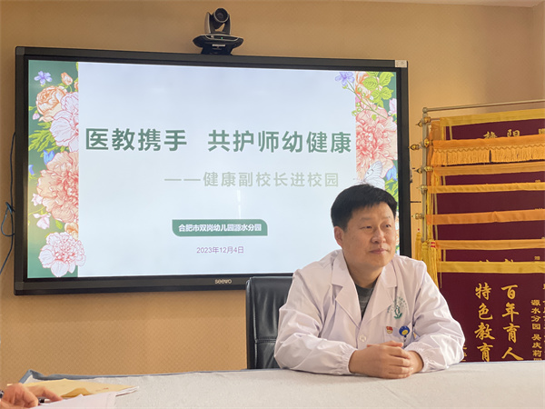 结合近期冬季传染病形势,为了切实加强校园传染病防控工作,增强教职工对幼儿常见传染病的防范意识,有效预防传染病的发生和流行,12月4日下午,合肥市双岗幼儿园源水分园特邀该园卫生健康副校长,大杨卫生服务中心胡宗云医生来园为全体教职工开展“呼吸系统疾病知识健康”。