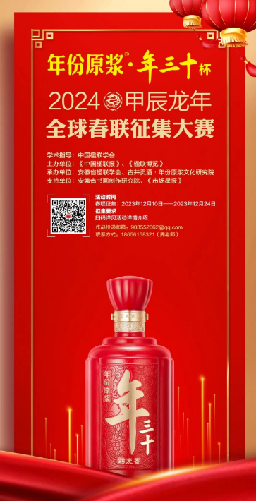 2024年为甲辰龙年,龙是神话中圣物,在中国传统文化中,其是中华民族精神的象征,是民族的图腾。在2024甲辰龙年到来之际,继2023癸卯年面向全球成功征集春联之后,为进一步弘扬中华优秀传统文化,展示独具特色的中国年文化,助力中国式现代化,礼赞新时代,古井贡酒特携手《中国楹联报》《楹联博览》、安徽省楹联学会,面向全球华侨、华人和各界友好人士,特征集2024甲辰龙年春联!