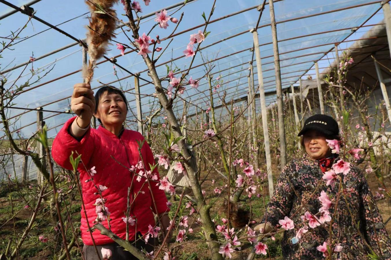 市场星报、安徽财经网(www.ahcaijing.com) 、掌中安徽讯(张成伍)2月15日,安徽省宿州市埇桥区西二铺镇农民正在抢抓油桃花开的授粉期为油桃授粉。近年来,埇桥区依托丰富的旅游资源,发展观光旅游、休闲娱乐、采摘为一体的特色农业产业,让农民在家门口旅游观光,增收致富。