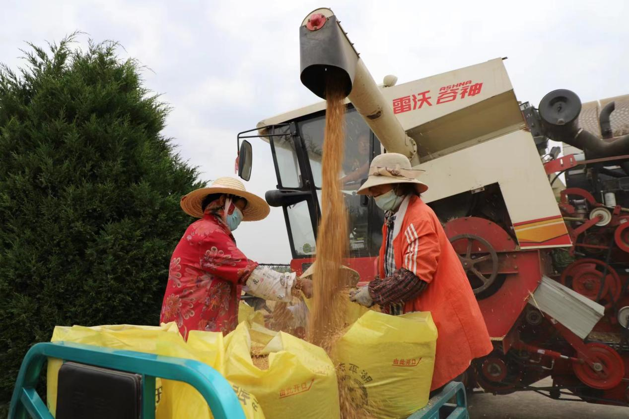 市场星报、安徽财经网(www.ahcaijing.com) 、掌中安徽讯(张成伍 记者 禹志强)6月3日,安徽省宿州市埇桥区符离镇清水村的麦田里,大型联合收割机、粮食运输车,机声隆隆,来回穿梭,一派繁忙的丰收景象。今年“三夏”,埇桥区农业机械化唱主角,全区有10多万台套农机战“三夏”,覆盖率99%以上。机械化作业,速度快,割的干净,损耗降低,作业质量高,收割粉碎后的秸秆抛撒均匀,方便夏种玉米、大豆播种。