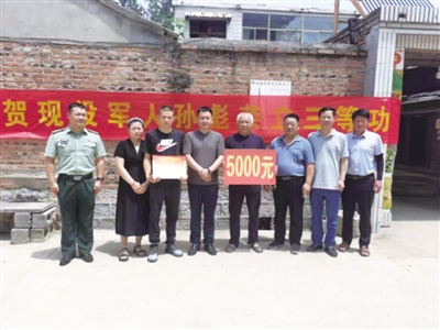 在蔡塘村孙彪的家里,孙彪的父亲孙孝田激动且自豪地介绍说:“我两个儿子都在部队服役,今年获1个三等功、4个优秀士兵的喜报,这是我们家最光荣的一刻。”刘金虎镇长表示:“下楼镇党委和政府十分感谢你们将两个儿子都送到部队,献身国防事业,为家乡增光添彩。”