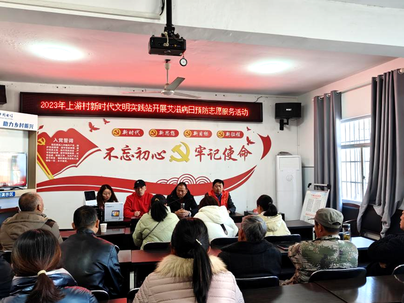 上游村新时代文明实践站,组织志愿者开展预防艾滋病市民教育活动,从艾滋病的概念、流行情况、传播途径、防护措施以及预防艾滋病的重要性等方面进行深入细致的讲解。