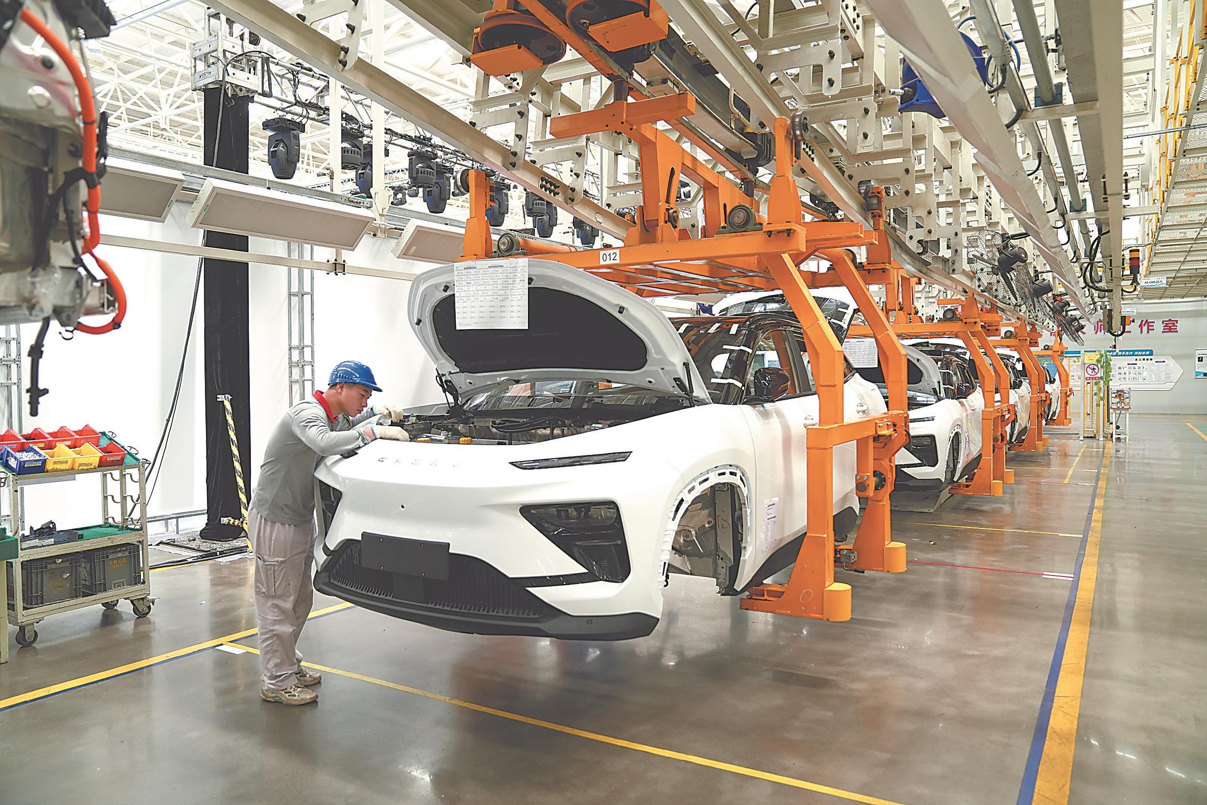 在芜湖奇瑞新能源二期工厂,工人在生产新能源汽车。(资料图片)本报记者 李 博 摄