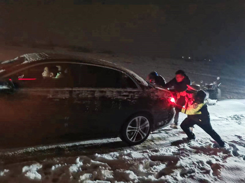 坚持警力压向一线,对结冰路段沿线滞留司机和群众主动做好帮助救助服务。高速大队免费为滞留群众提供热水、面包、泡面等食品物资,并在大队营房开辟母婴室,最大限度方便群众。