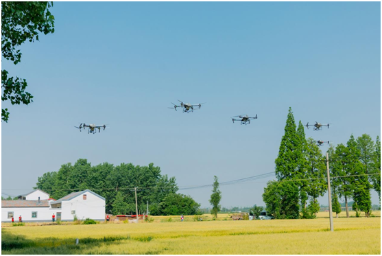(现场无人机播撒展演。邵鹤奇/摄)