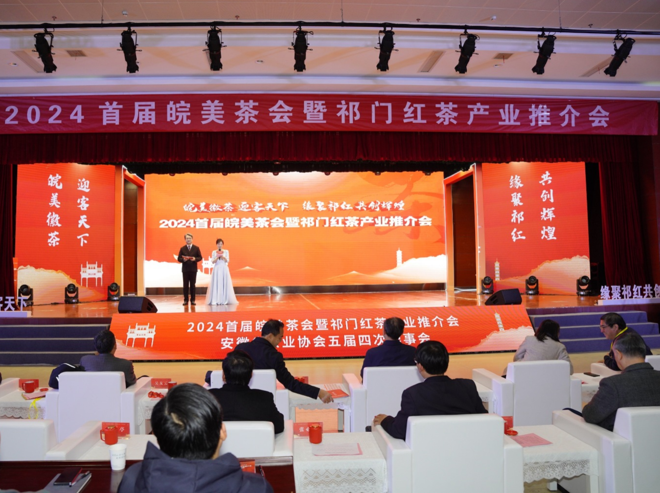 12月27日,2024首届皖美茶会暨祁门红茶产业推介会在安徽祁门成功举办。本次大会由安徽省茶业协会、祁门县人民政府主办,祁门县祁红产业发展中心、安徽省祁门红茶产业集团有限公司、安徽省茶业协会茶旅工作委员会承办,安徽省茶业学会、安徽省茶文化研究会、安徽农业大学茶业学院、安徽省农业科学院茶叶研究所、祁门红茶协会、祁门县茶艺协会协办。省直单位有关领导和特邀嘉宾,上海、浙江、江苏、江西等省外茶协嘉宾,各市、县(区)涉茶单位负责人及参会代表,省茶协副会长、常务理事、理事和会员代表,茶企茶商以及祁门县有关单位代表和媒体代表等近300多人参加了本次活动。