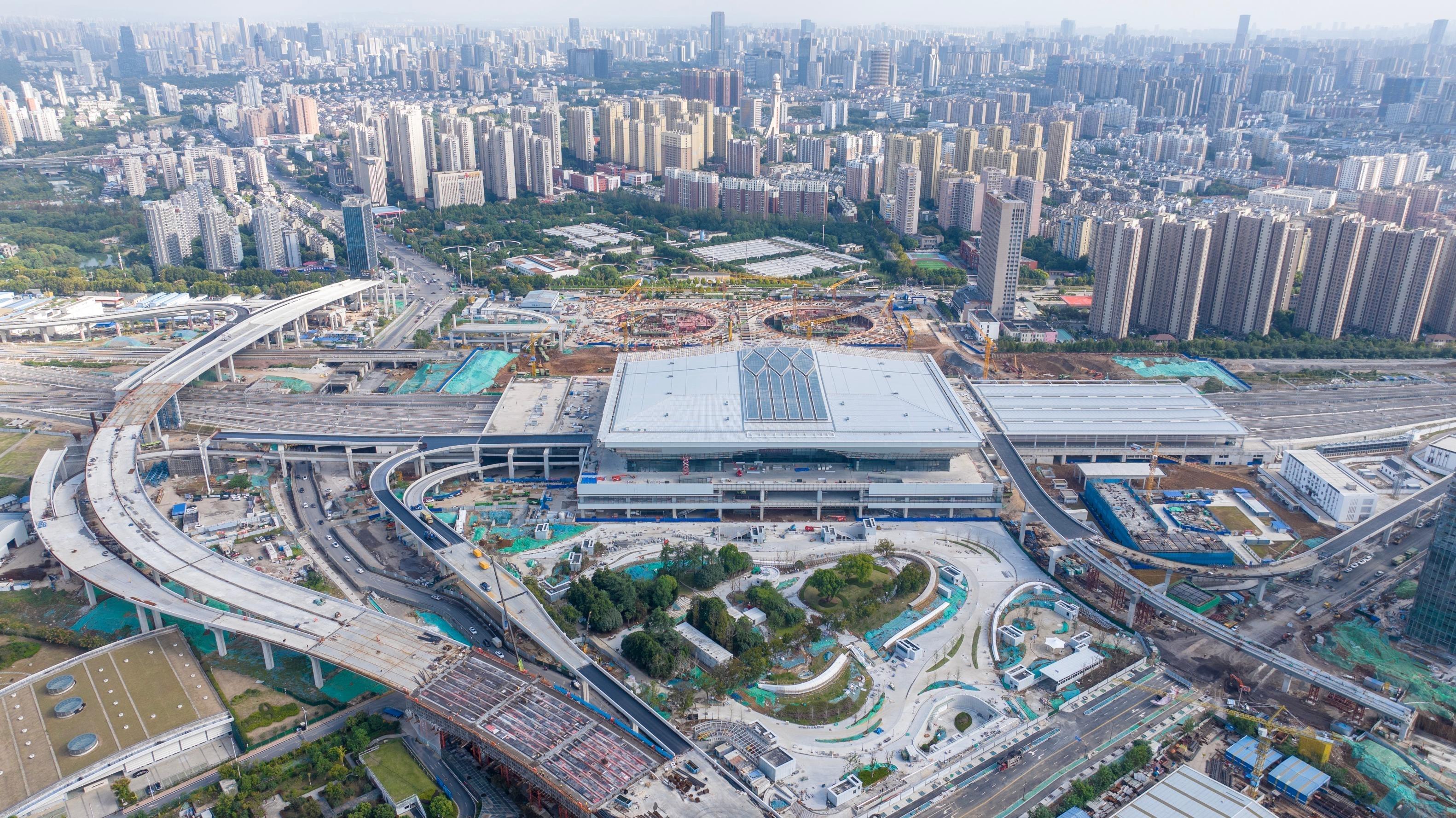 10月20日拍摄的合肥市新合肥西站项目建设现场,主体站房及周边配套路网加紧施工。新合肥西站已现雏形。未来,合肥西站将与合安高铁、合新高铁、合福高铁、合蚌高铁、商合杭高铁等线路紧密相连,成为合肥乃至安徽铁路枢纽的又一关键节点。