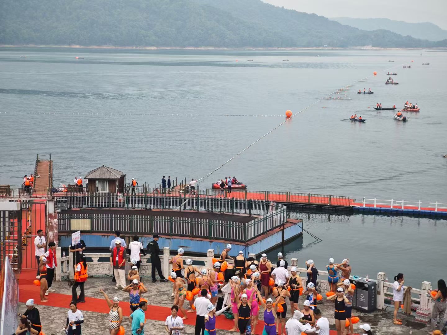 5月19日上午,2024年“7·16全国公开水域游泳系列赛”暨“泓冠光电杯”第七届中国·花亭湖国际公开水域游泳赛在太湖县开幕。