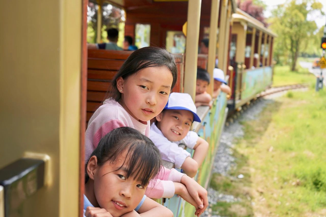 在与老师们游戏和舞蹈的激情开场后,小火车之旅最受孩子们追捧。沿途绿树成荫风景优美,宛如一场奇幻的绿野仙踪。色彩鲜艳的轨道观光小火车,哐当哐当地行驶在轨道上,只见两旁蔷薇、杜鹃花等形成美丽花海,仿佛驶入浪漫的梦境。“今天上午我玩了很多有趣的项目,令我印象最深刻的就是乘坐小火车。在车上漫游乐园,可以用不同的视角欣赏沿途的风景,让我亲身感受到春天的气息和大自然的美妙!”面对记者的采访,四年级(3)班的学生西一晨说起了自己的真实感受。