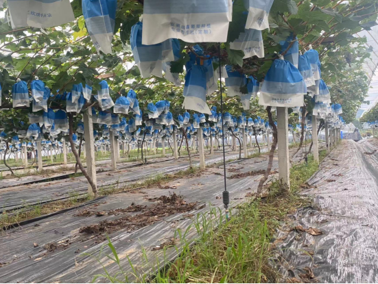 果园中,阳光玫瑰葡萄如璀璨的绿宝石,密密麻麻地挂满了枝头。今年,它们的产值高达20万斤!那一串串饱满的葡萄,在阳光的轻抚下,闪耀着迷人的光芒。果农们为了方便采摘,会在果园中搭建临时的架子和梯子,他们小心翼翼地攀爬,熟练地剪下一串串葡萄,放进筐中,脸上洋溢着丰收的喜悦。装满水果的箩筐和推车在果园的小路上来来往往,车轮在土地上留下深深的痕迹。