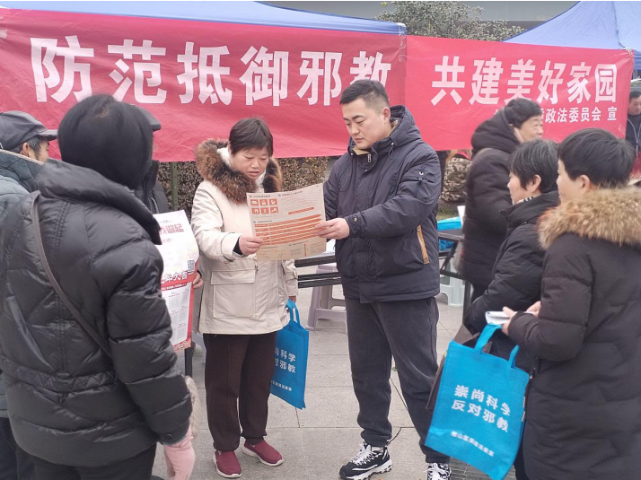 活动现场,反邪教协会志愿者们通过发放宣传单和年历、面对面讲解等形式,耐心向群众讲解邪教的危害,并通过讲解真实案例向群众揭露邪教的反动本质,引导群众相信科学,破除迷信。同时倡导大家积极检举揭发邪教的违法活动,参加到反邪教行列中来。