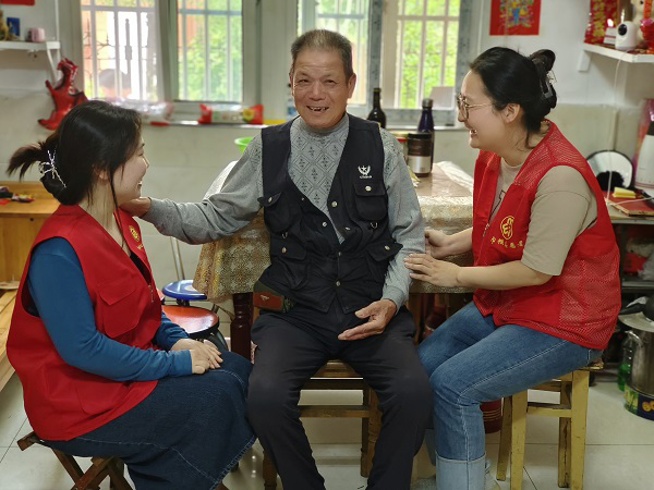 活动中,志愿者向居民发出微笑倡议,倡导居民用微笑缩短彼此距离,用尊重和包容的心态处理生活中的磕磕碰碰,共同创建和谐社区。同时,志愿者在老人周培生家中愉快拉家常,让老人感受社区大家庭的关心和温暖。幸福驿站为环卫工人准备爱心茶水,提升户外劳动者们的幸福感,传递着愉悦友善的美好情感。梅山路小学二年级5班的学生们用笑脸图案表达对美好未来生活的憧憬和向往。