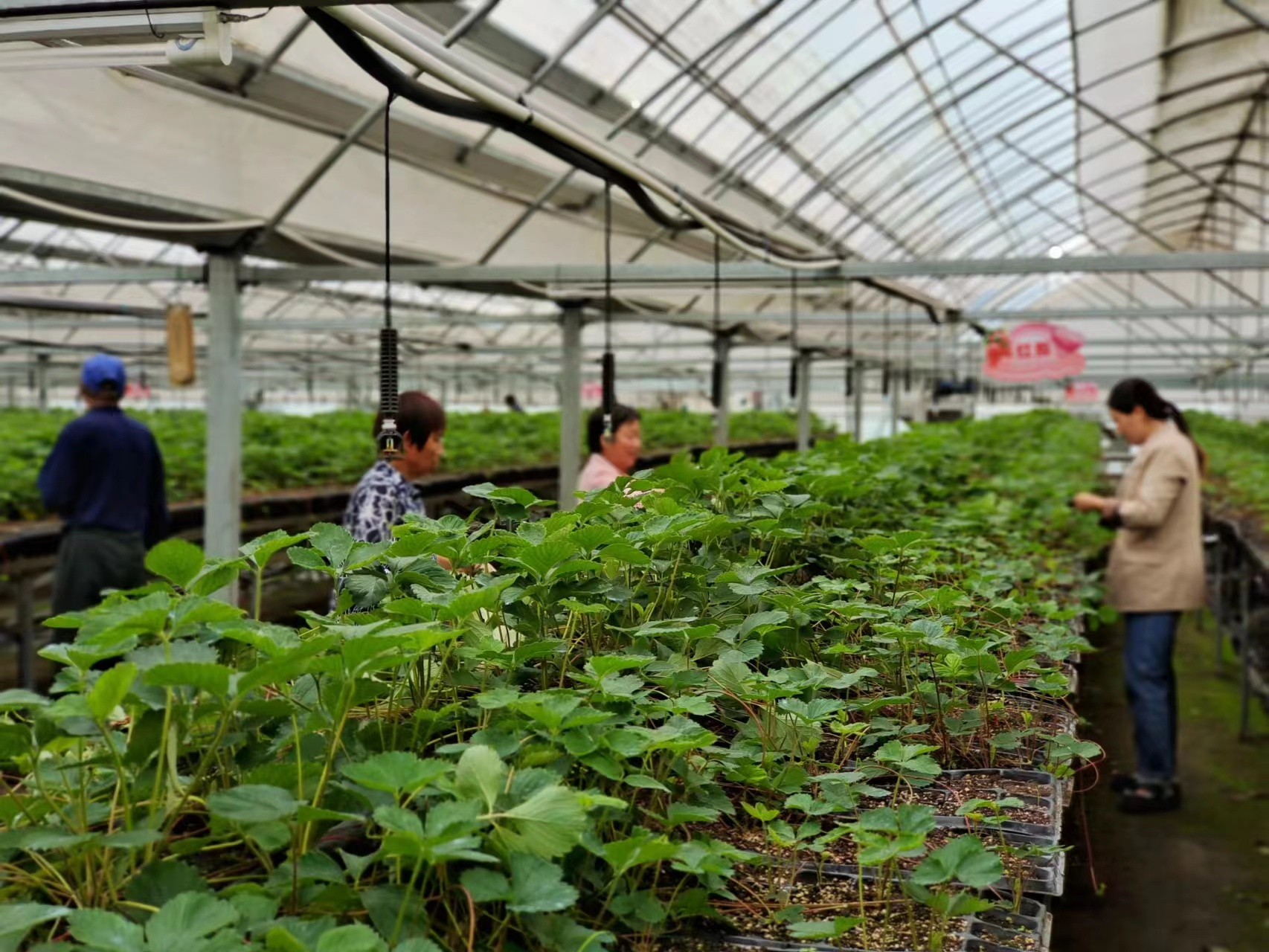 支部领办合作社,增强发展“内生力”。草莓产业是石梁河村主导特色产业,种植面积万余亩,年产值超4亿元。“苗好七分收”,为解决草莓育苗难题,该村实施“党支部+合作社+农户”运行模式,引进优质种苗,与省农科院、安农大等科研院所建立合作关系,利用村属连栋示范大棚,实施高架无土育苗,为本村育苗户提供优质草莓种苗,示范带动本土化育苗产业发展。2023年,通过支部引领示范,莓农跟进联动,村集体增收近20万元,带动6家草莓种植专业合作社、24个种植大户繁育草莓苗600余亩,园区草莓生产苗实现50%的自给率,为群众节约生产成本500万元以上。