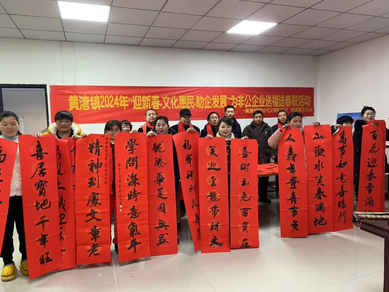 2024年1月25日,黄湾镇新时代文明实践所开展“迎新春·文化惠民·助企发展”为非公企业送福送春联活动,不仅带去党和政府的关爱,更助推民营企业高质量发展。