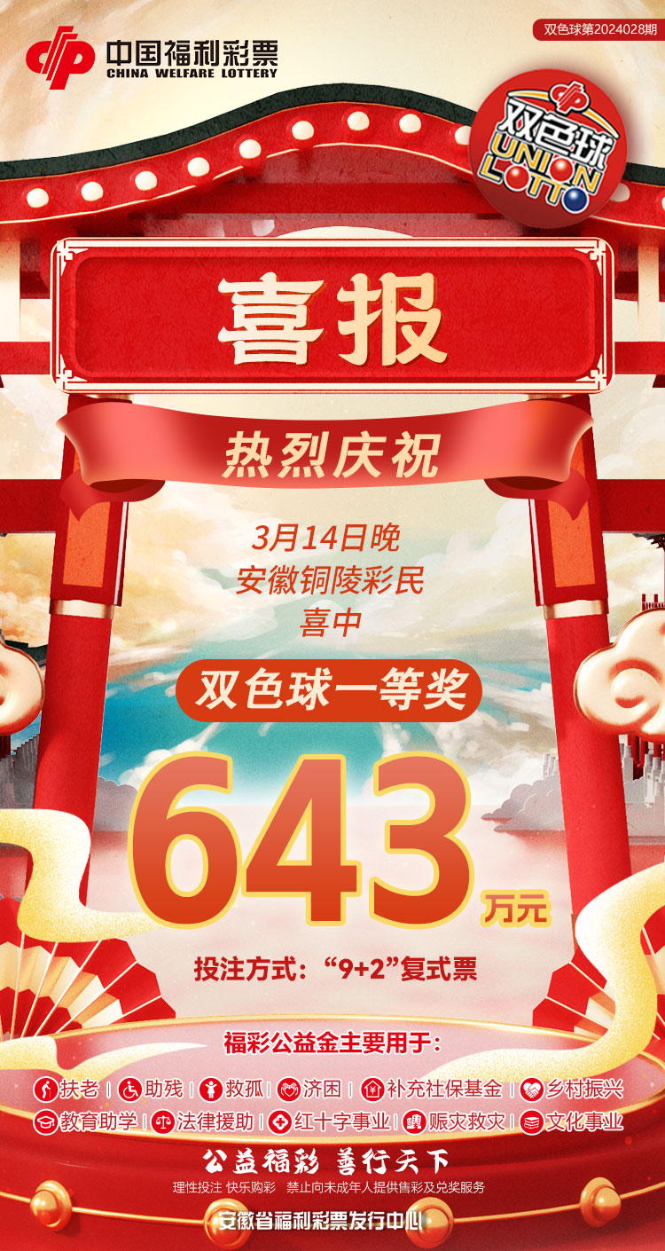 据检索,我省大奖出自铜陵市顺安镇紫金城服装街第34111019号销售网点,中奖票系一张336元自选“9+2”复式号码票,中得1注一等奖、1注二等奖及固定奖67250元,共获得奖金660万余元。