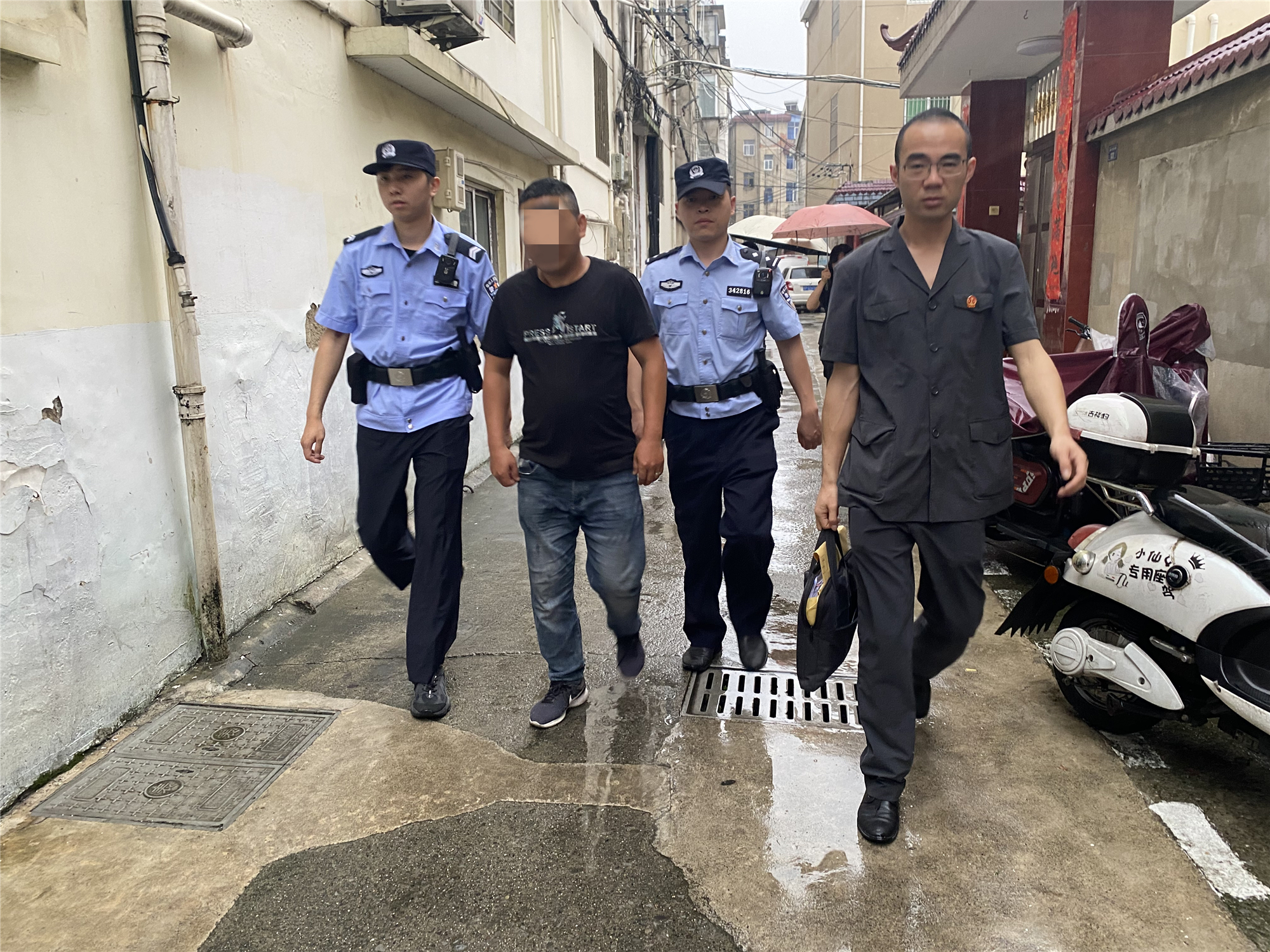 5时30分,法院大楼前已是警灯闪烁,20余名执行干警准时集结、整装待发,在宁国市法院院长陶友玲、执行局局长胡乐的号令下,迅速上车,兵分多路,冒雨奔赴执行现场。执行过程中,干警们根据个案差异,灵活运用执行措施,打出执行组合拳,有力维护了司法权威,同时将善意文明理念贯穿执行全过程,确保执行活动规范高效开展。