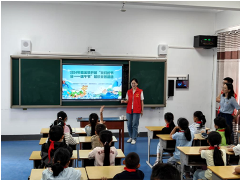 6月3日,临溪镇新时代文明实践所组织志愿者前往临溪中心小学开展“我们的节日——端午节”知识竞答活动。通过互动问答形式,让他们在游戏中收获快乐和知识。