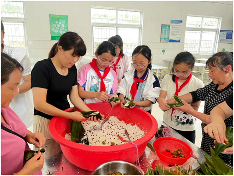 市场星报、安徽财经网(www.ahcaijing.com)、掌中安徽讯(傅玲慧 曹开发)农历五月初五,是中华民族传统的节日——端午节。为增强学生对传统文化的认同感和自豪感,丰富师生校园生活,进一步推进劳动教育,培养学生热爱劳动的良好品质。近日下午,在端午节来临之际,旌德县白地中心学校开展了以“‘粽’享童趣,浓情端午”为主题的端午节包粽子劳动实践活动。