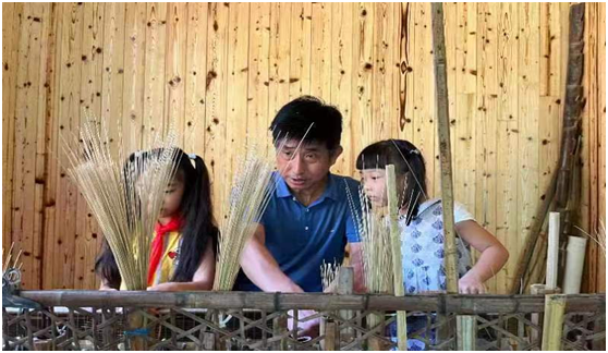夏日炎炎,“草色帘青”非遗人家游客如织。前来研学的学生围坐一圈,聆听“非遗”传承人曹一松讲述宣纸帘百年传承的故事。