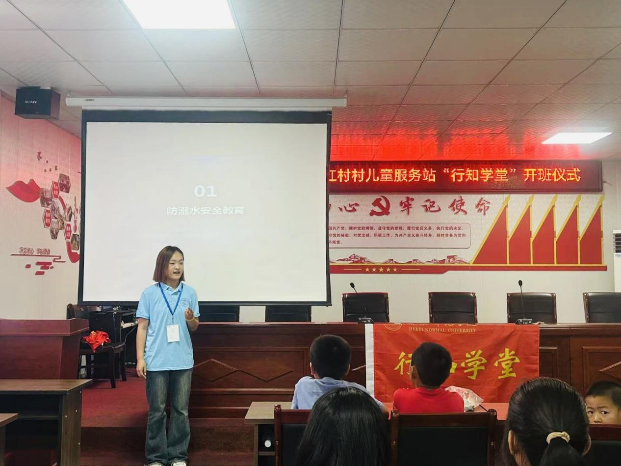 开班仪式结束后,“小先生”们针对儿童暑期防溺水、防拐骗等情况,为孩子们开讲了一趟生动有趣的安全教育第一课。
